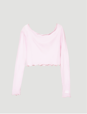 Шорты сделаны из лёгкого и очень мягкого полупрозрачного хлопка розового цвета. По центру нет шва, чтобы было удобно носить на голое тело. На талии — тонкая деликатная резинка. Края обработаны волнистым швом. Можно подобрать два вида верха из комплекта — майку или кофточку.
